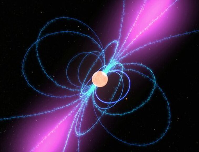 毫秒脈沖星的轉速之快令人驚嘆,最快者每秒可旋轉716次。按照這一速度計算,它僅需7秒鐘便能從地球到達月球。這種極高的轉速是由于墜落在其表面的來自環繞恒星的氣體使其旋轉起來,類似于落下的水讓水車旋轉的原理。然而,2012年德國科學家的一項研究顯示,在質量傳遞結束后,脈沖星的磁氣圈(即其磁場捕獲帶電粒子的空間區域)將會膨脹,進而減緩其旋轉速度。這一過程與旋轉的滑冰者伸出雙臂來減速的原理相似。如果沒有這一過程,毫秒脈沖星的運行周期可能會變得更短,甚至不到1毫秒。